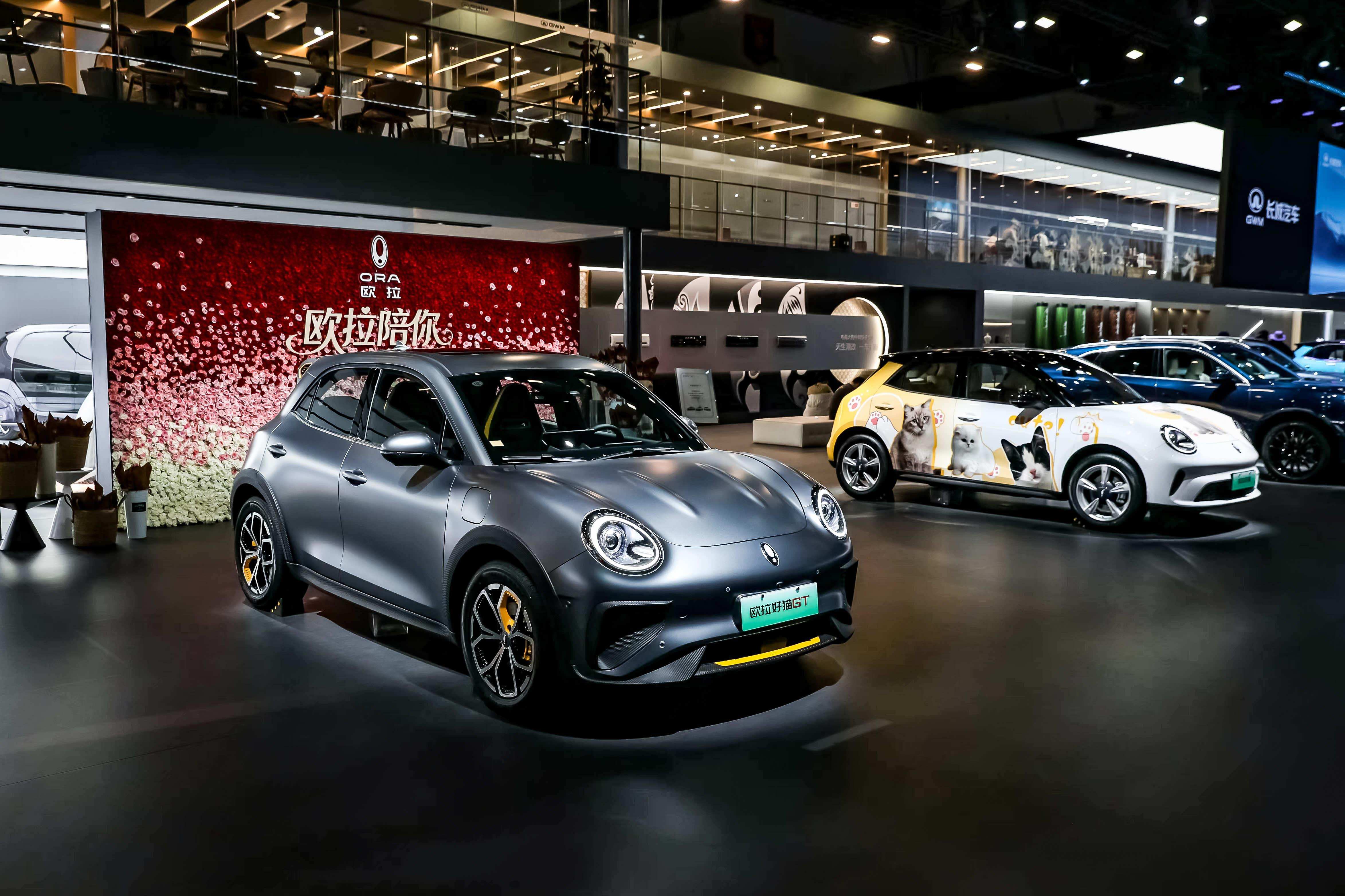 “用户共创文化”是欧拉展台的另一大亮点。展台上的所有“痛车”均源自用户创意:“萌宠 CP”欧拉好猫身披猫咪车衣,传递“好玩好开”的产品性格;优雅的芭蕾猫融合国风文化,其经典造型与旁边的越野车搭配组合,凸显刚柔并济的风格;“潮酷 CP”闪电猫以黑底蓝绿图案,彰显四驱澎湃动力。这些作品既是用户个性的表达,更让欧拉的“经典”不再是静态标签,而是品牌与用户深度互动、动态生长的生态。