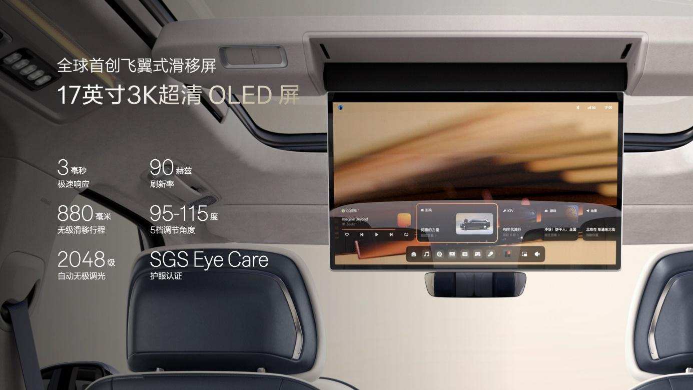极氪9X搭载全球首创的17英寸3K超清OLED飞翼式滑移屏