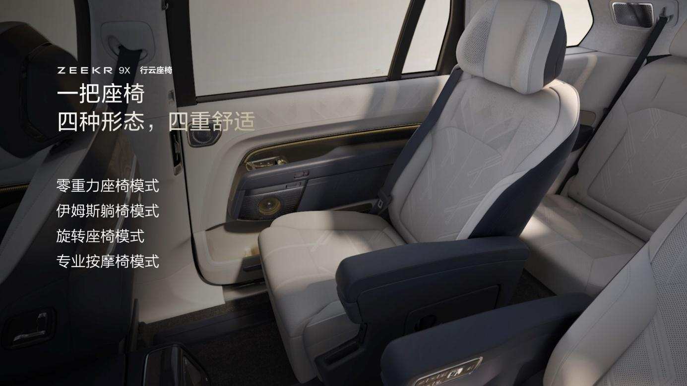 极氪9X的「行云座椅」拥有四种座椅形态,带来四种舒适享受