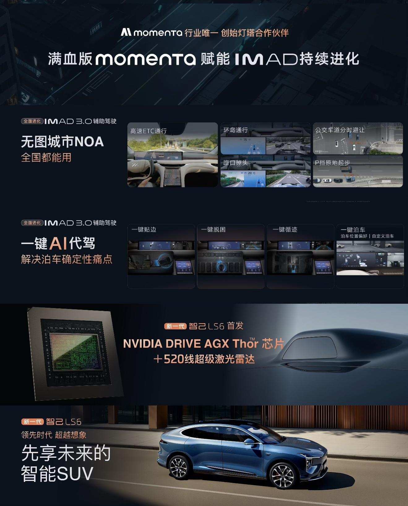 比如,智能配置方面,新一代LS6的IM AIOS首次引入AI Agent随车智能助手,深度融合微信生态,支持停车缴费、外卖点单等场景服务,实现『车机比手机更好用』;辅助驾驶领域,在Momenta的赋能下,IMAD 3.0无图城市NOA实现『全国都能开』,项娇在回应辅助驾驶配置差异时明确,『无论是视觉版还是激光雷达版,都是和合作伙伴Momenta合作的满血版』,同时新车还提供英伟达DRIVE AGX Thor芯片与520线超级激光雷达的选装方案,进一步提升智能驾驶的安全上限。这种『基础功能拉满、高阶功能可选』的智能配置策略,既降低了用户入门门槛,又满足了高端需求,形成了覆盖不同智能需求用户的产品矩阵。