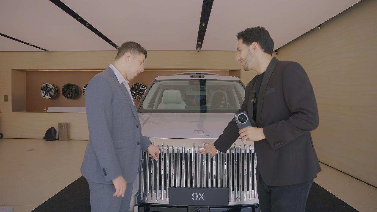9月9日上午,北京极氪中心蓝色港湾店接待了两位特别的客人,来自迪拜的记者方浩明和同事毕诺,刚一到达极氪中心便直奔那台心动已久的极氪9X。此前,方浩明泪洒阅兵观礼现场,引发关注。方浩明初见实车,霸气的外观和质感便给他带来了第一重震撼。“现场看太震撼了,完全是百万级别的体验。”方浩明表示。