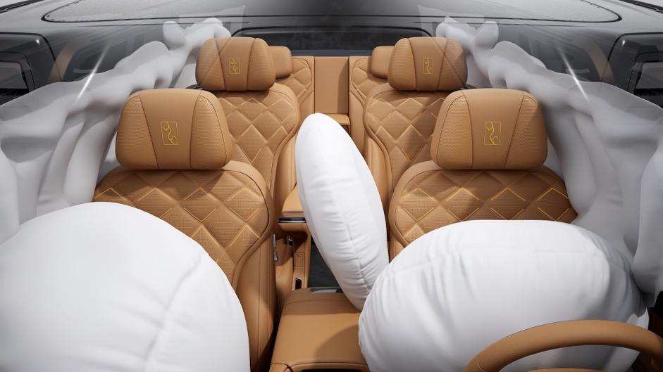 在主动与被动安全配置上,仰望U8L鼎世版同样展现出『标配即顶配』的诚意。其标配的碳陶刹车盘,凭借轻量化、高摩擦系数、无热衰退等特性,大幅提升制动性能,尤其在高速或雨天行驶时能缩短制动距离。二排零重力座椅搭载的主动回位技术,可联动AEB制动信号,在识别碰撞风险时自动将靠背调整至安全角度,避免大角度靠背状态下乘员受伤;14个安全气囊的配置(含新增的前排远端侧安全气囊、覆盖第三排的前后贯穿式侧气帘),则在碰撞发生时构建起全方位的被动防护屏障。