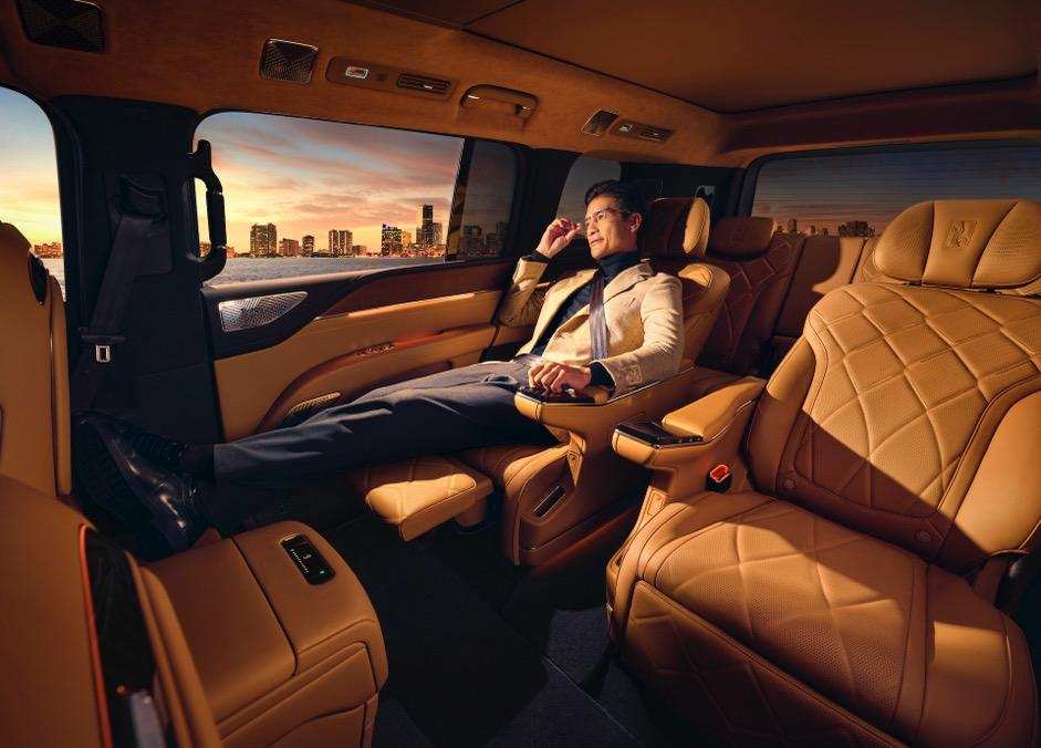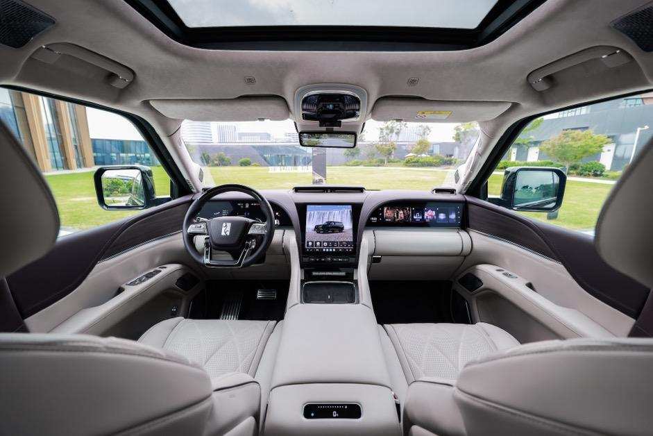 座舱内的丹拿铂金证据系列Hi-End级32扬声器系统(2040W功放、7.1.6全景声布局)、128色环绕式氛围灯、自然节气主题香氛(寒露、春分等5种香型)、-6~15℃制冷/35~50℃制热的智能冰箱(下电后可延时工作12h),以及五温区独立空调(二排出风口移至顶棚以提升出风效率),从听觉、视觉、嗅觉、触觉多维度构建了豪华舒享氛围。