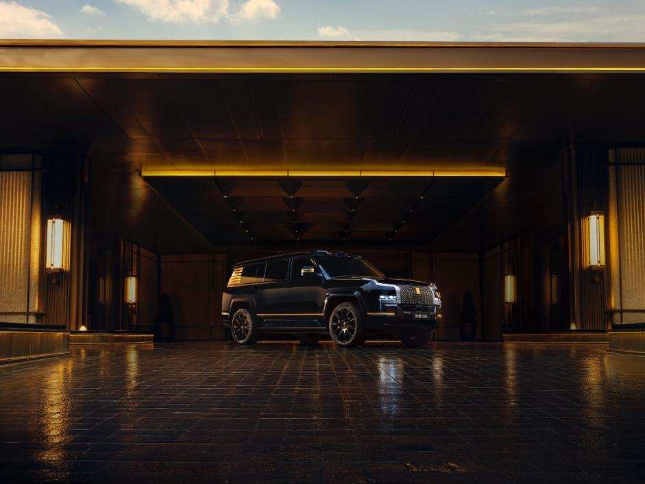 车身侧面的『鼎』型线条勾勒出方正姿态,5款车身配色中,曜石黑配日曜金、曜石黑配日珥金两款专属黑金配色,灵感源于战国时期的黑漆描金工艺(现藏于故宫博物院的万花献瑞图屏风即采用该工艺)。