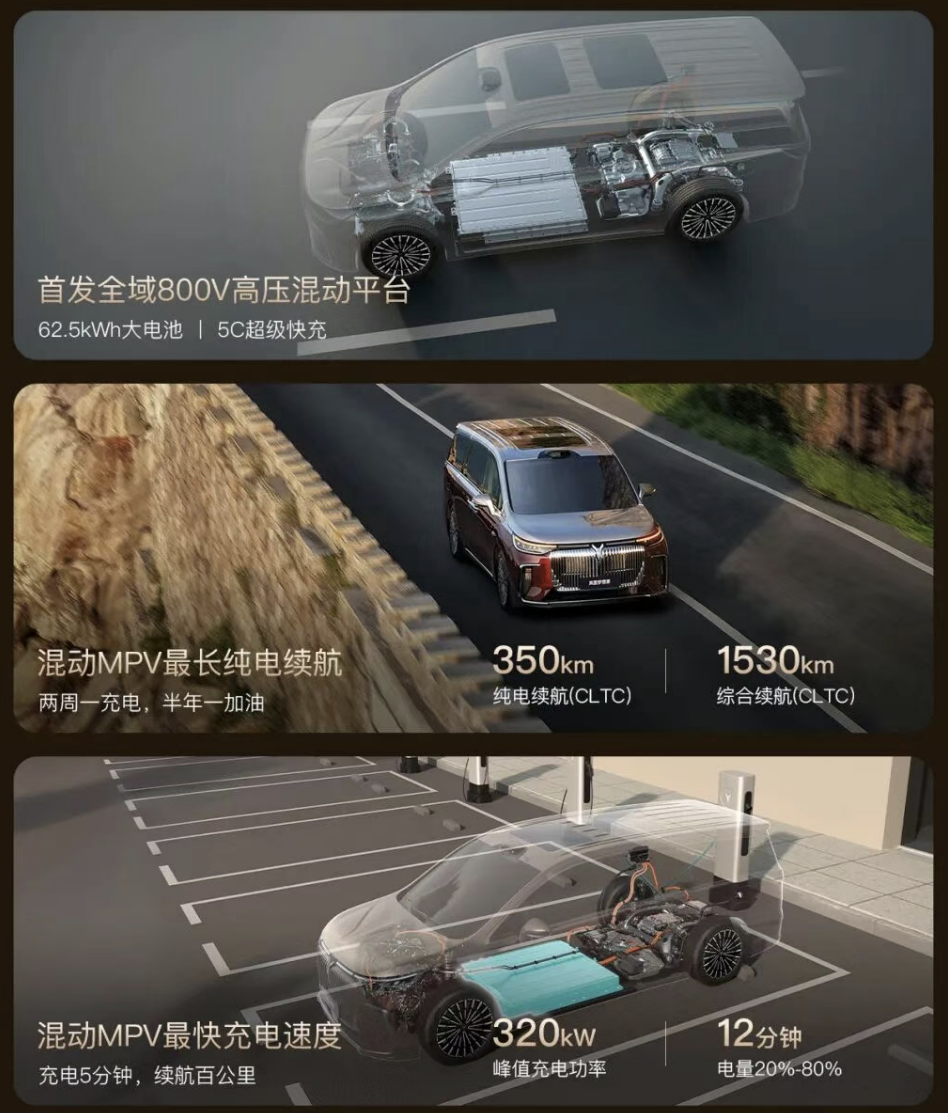 62.5度大电池、5C超充、800V……出现在了一款插混MPV上!