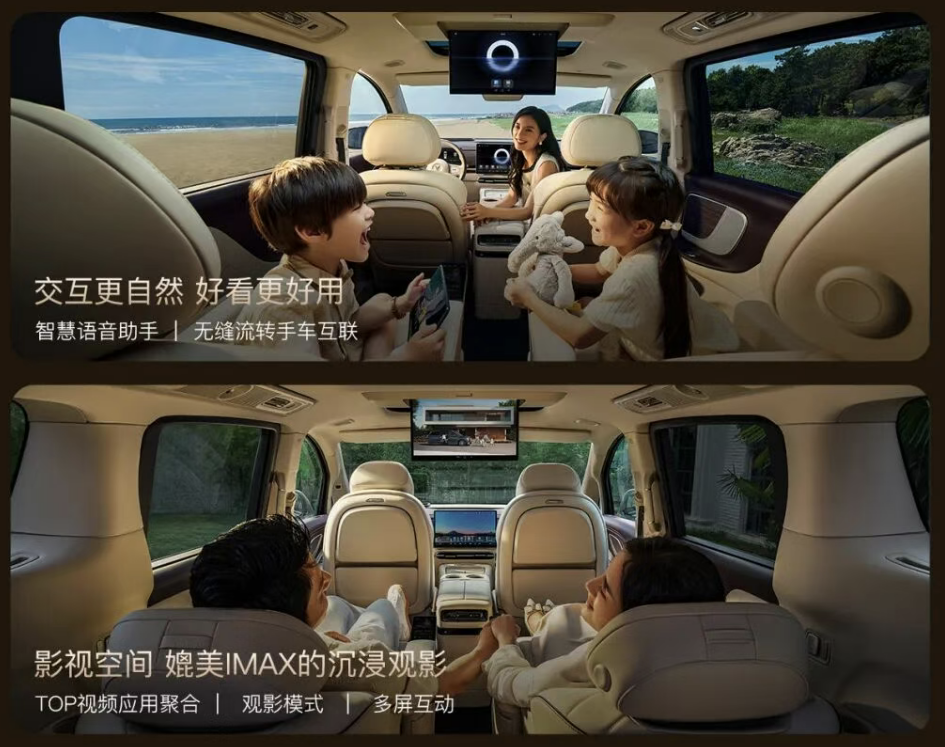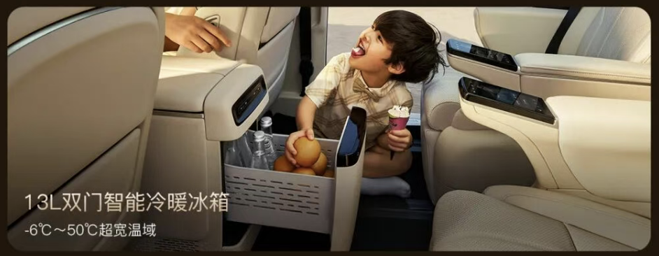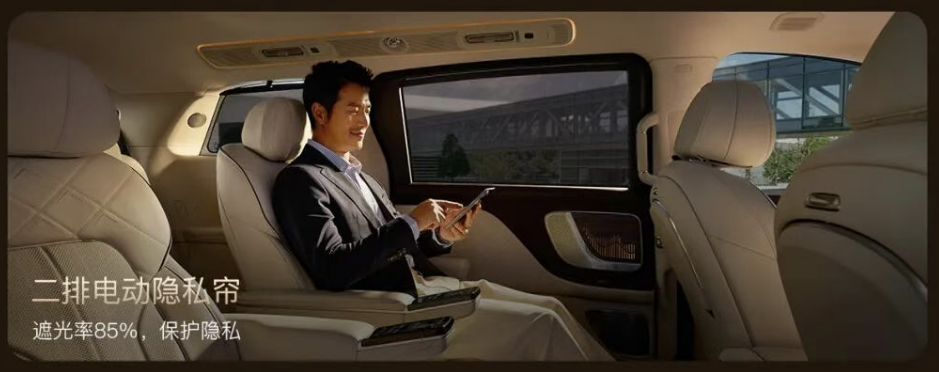 该车打造极致舒适的臻享座舱,配备集零重力按摩、环抱式加热与吸风式通风功能于一身的航空级座椅。此外,二排电动隐私帘、13L双门智能冷暖冰箱、29英寸AR-HUD抬头显示及17.3英寸3K超清后排娱乐屏等一系列豪华配置。