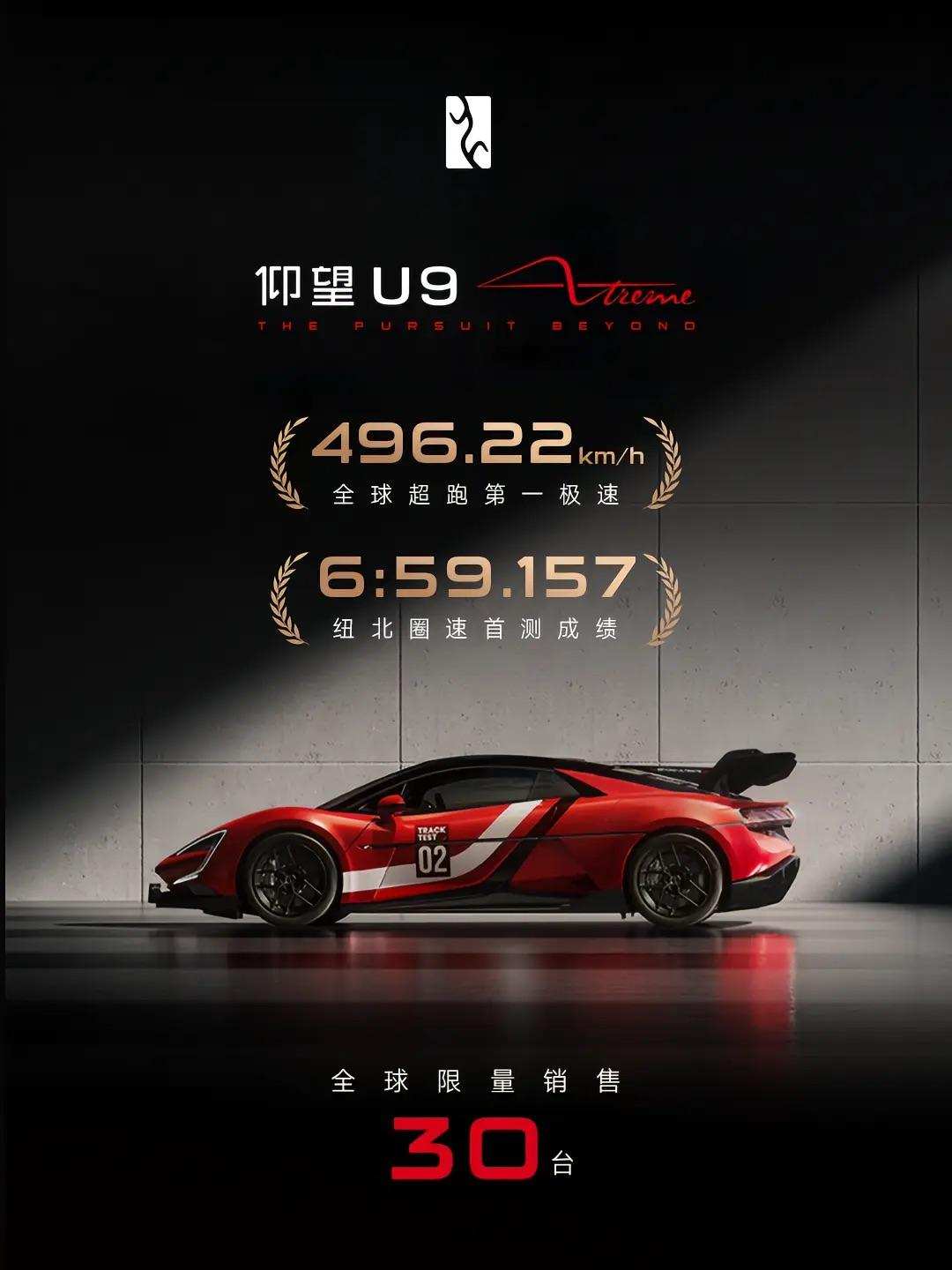 从打破电车极速纪录,到超越燃油车登顶全球极速榜首,再到纽北赛道的圈速认证,仰望U9X用一系列硬核成绩,书写了中国新能源汽车的『高性能篇章』。而全球30台限量的稀缺性,更让每一台U9X都成为中国汽车技术实力的『移动名片』。未来,随着这类技术突破的不断涌现,中国品牌在全球汽车产业中的话语权必将进一步提升,而仰望U9X所开启的『纯电高性能时代』,也将为行业发展注入更多可能性。