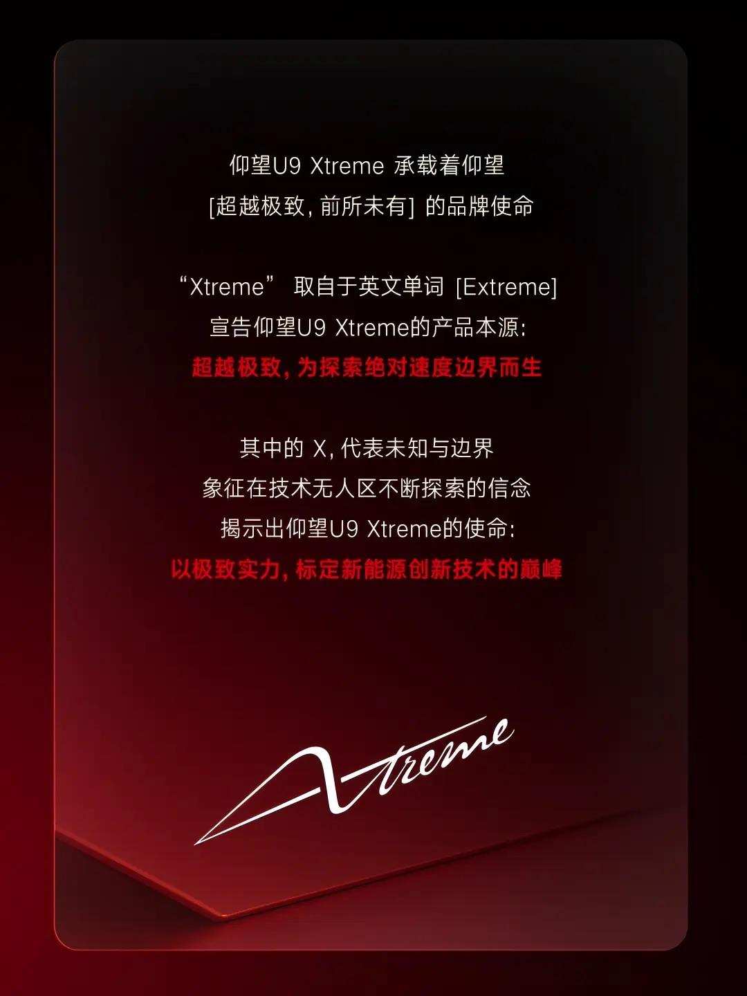 仰望U9X的命名本身便传递着明确的定位——『Xtreme』源于英文『extreme』,象征对极限的追求,而字母『X』则寓意对未知边界的探索。与现款仰望U9『可赛可街可玩』、兼顾日常舒适性与赛道驾趣的定位不同,U9X将所有研发重心聚焦于极致赛道性能,通过整车软硬件的全面赛道化升级,彻底释放纯电超跑在极限场景下的潜力。