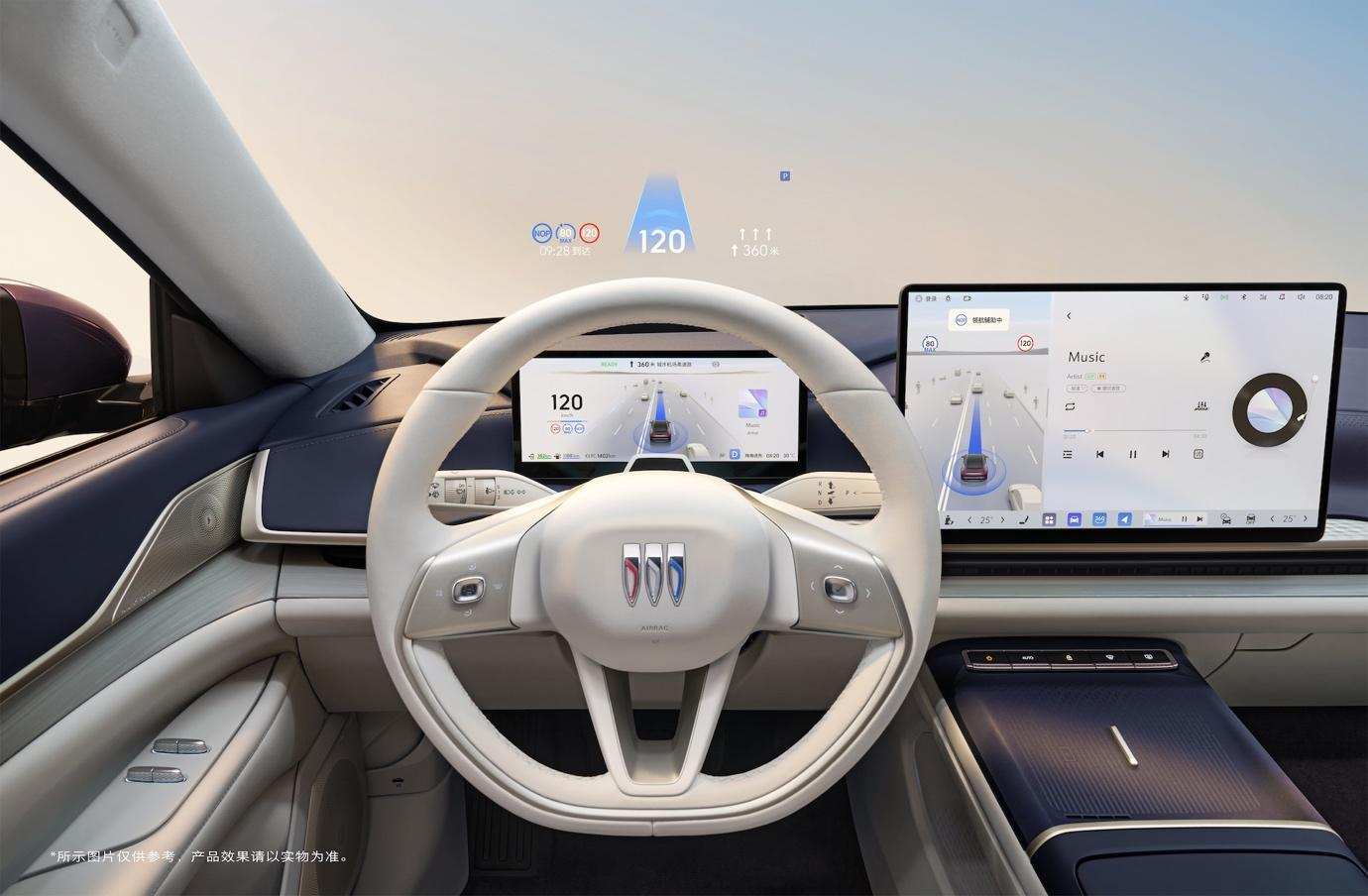 座舱内的多屏数字空间极具辨识度。50吋全景AR-HUD是同级唯一,不仅能将15组以上驾驶信息(如导航、车速、ADAS提示)与真实道路场景融合,驻车时还能播放高清视频,相当于移动的『家庭影院』。