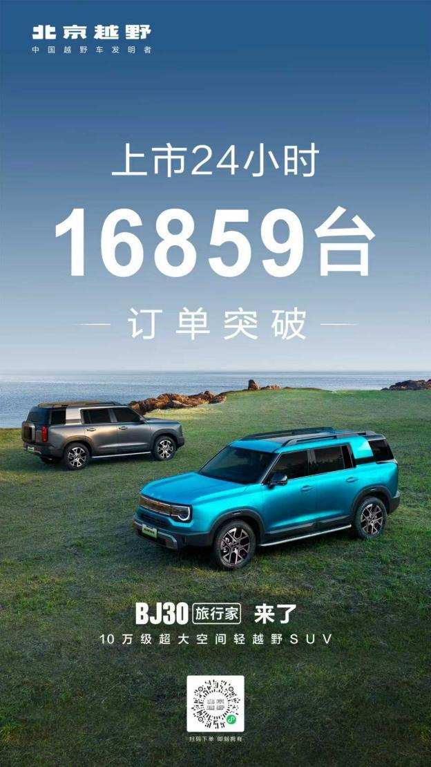 9月28日,BJ30旅行家上市24小时订单突破16859辆。BJ30旅行家于9月27日正式上市,定位为10万级超大空间轻越野SUV,新车共有6款车型,官方指导价为9.99—13.69万元,旅行焕新价最低只需8.39万元起。