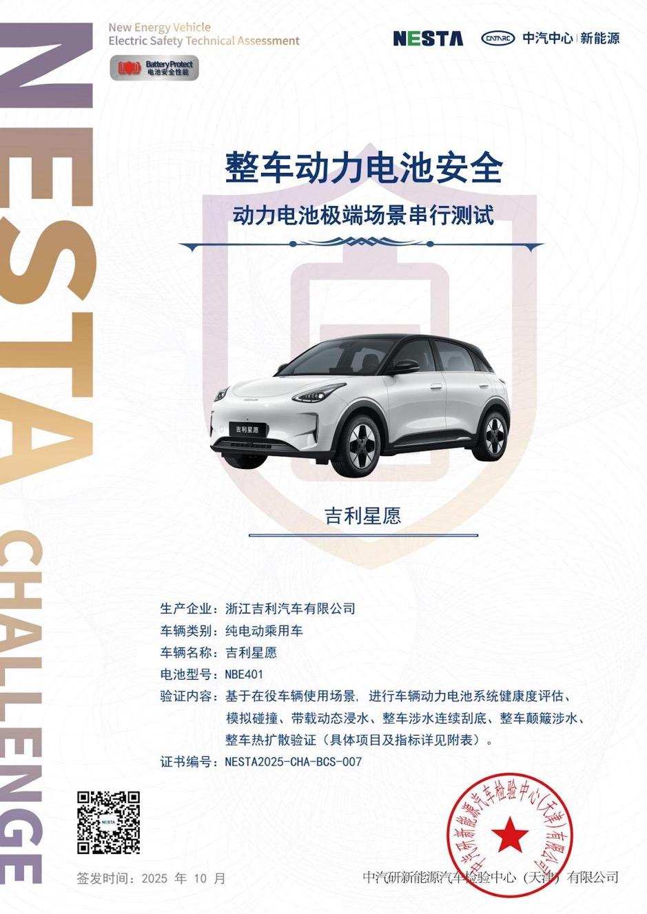 在电池寿命与安全上,星愿的表现同样超出行业标准:国标要求500次循环后电池容量保持率≥90%,而星愿在1000次循环后仍达90.72%;一辆行驶8.4万公里的星愿,电池容量保持率仍有96.5%,高于行业平均水平3个百分点。