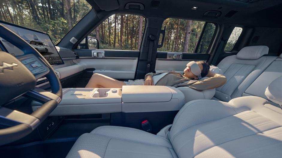 触觉上,座椅采用『4+1舒芙蕾架构』,1.3mm真皮层搭配10mm 3Dmesh透气层与25mm软棉悬簧,全车标配通风/加热,前排带按摩功能,后排靠背支持8°电动调节,副驾还配备腿托与『一键舒享模式』。