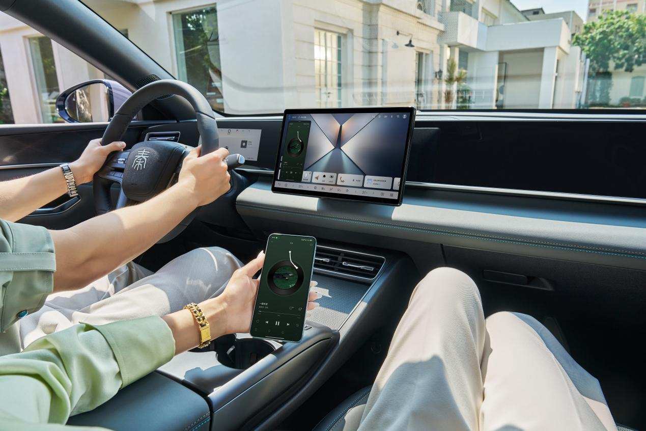 2026款秦L DM-i搭载智能座舱高阶版-DiLink100,除了实用的全场景智能语音、云服务、3D控车等实用功能,还有可穿戴设备NFC车钥匙,支持华为、OPPO、vivo、小米等主流品牌,一抬手就能轻松解锁;导航流转通过手机长按地址拖动至灵动岛或摇一摇,即可同步车机;音乐接续则能实现手机会员在车机瞬间同步,一份权益、双端共享。