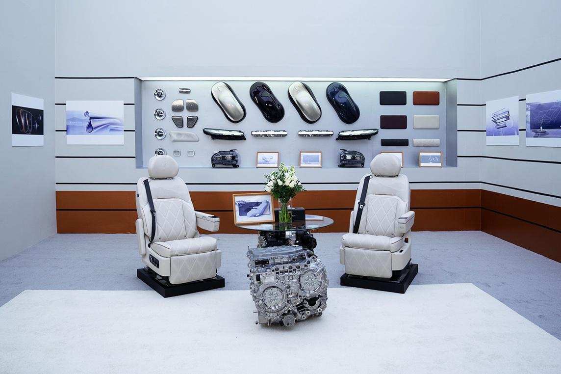 细节处更显匠心,车内大量运用山水意境孔纹,以5种不同规格的打孔皮革交叠呈现,最小孔径仅0.9mm,通过光影交错勾勒出远山近水的层次意境。与之呼应的是总面积达1.228㎡的山水流韵木饰,全车共11处精嵌,流动木纹装饰充满山形水意,仿佛将山水意境融入车内空间。