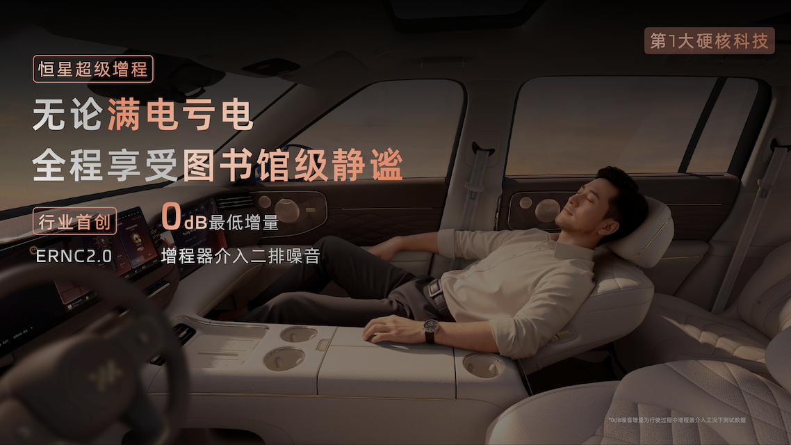 值得一提的是,行业首创的ERNC 2.0主动降噪技术,使增程器介入时二排噪音增量为0dB,一定程度上提升了座舱静谧性,接近纯电车的驾乘体验。