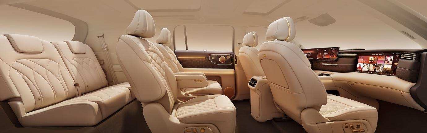 触觉与舒适性方面,全球首搭的4D机械按摩座椅是核心亮点之一。该座椅配备4个机械按摩球头,按摩强度为传统气囊按摩的7倍,可精准复现『敲、推、捏、揉』4种专业按摩技法,并提供5种古法经络按摩模式(全身舒展、敲揉舒压、推拿唤醒、揉搓活血、腰部古法),尤其适合长途驾驶或户外出行后的放松需求。同时,座椅内置专利碰撞安全结构,碰撞瞬间按摩球头可自动收回,兼顾舒适与安全。