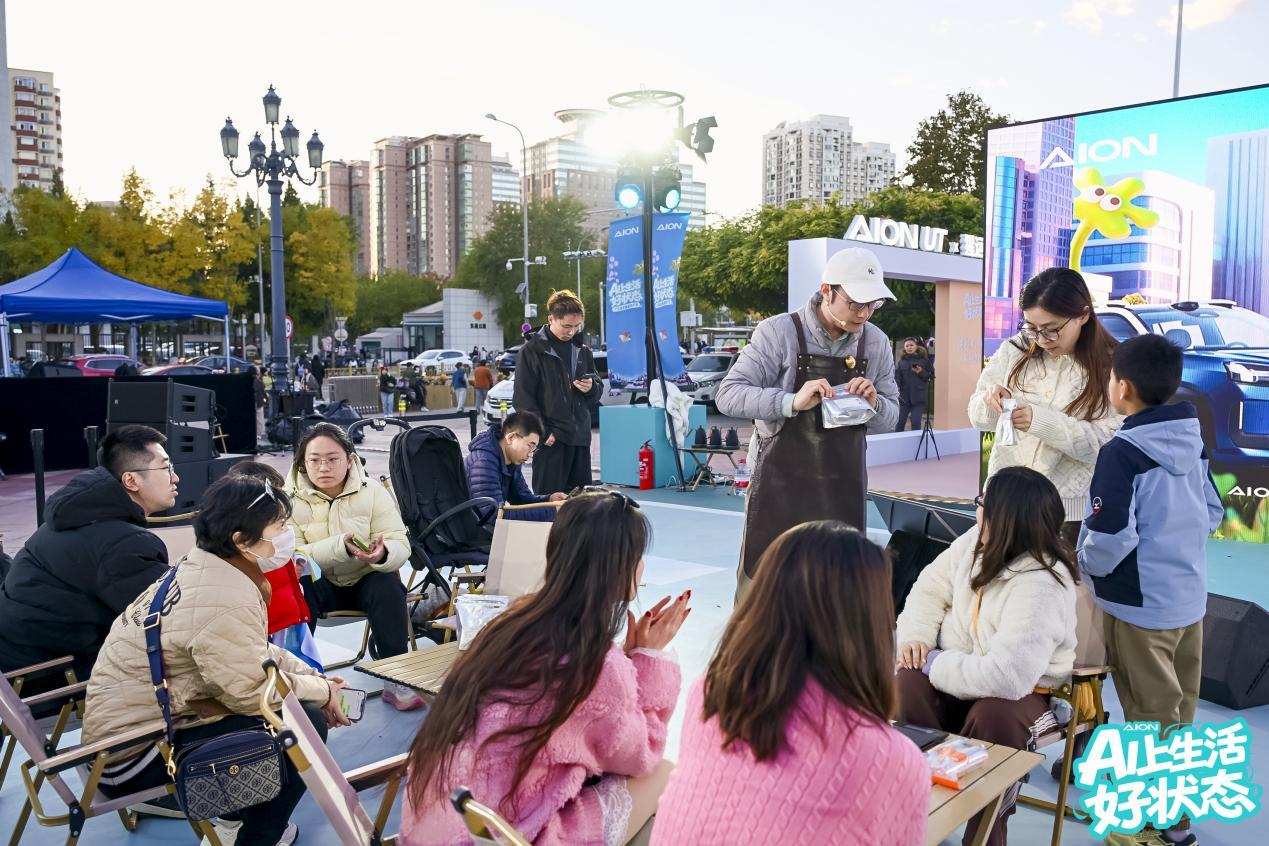 活动现场通过创新互动体验吸引了众多埃安用户和市民参与。如埃安UT车型化身运动空间,展现了紧凑车型的多元使用场景;埃安RT作为移动储能平台,其外放电功能满足了用户户外用电的需求;埃安霸王龙则成为亲子互动载体,现场开展的咖啡豆手工制作活动深受家庭用户欢迎。此外,全运会官方周边产品和优质车主集市商品也获得广泛关注,现场氛围热烈。