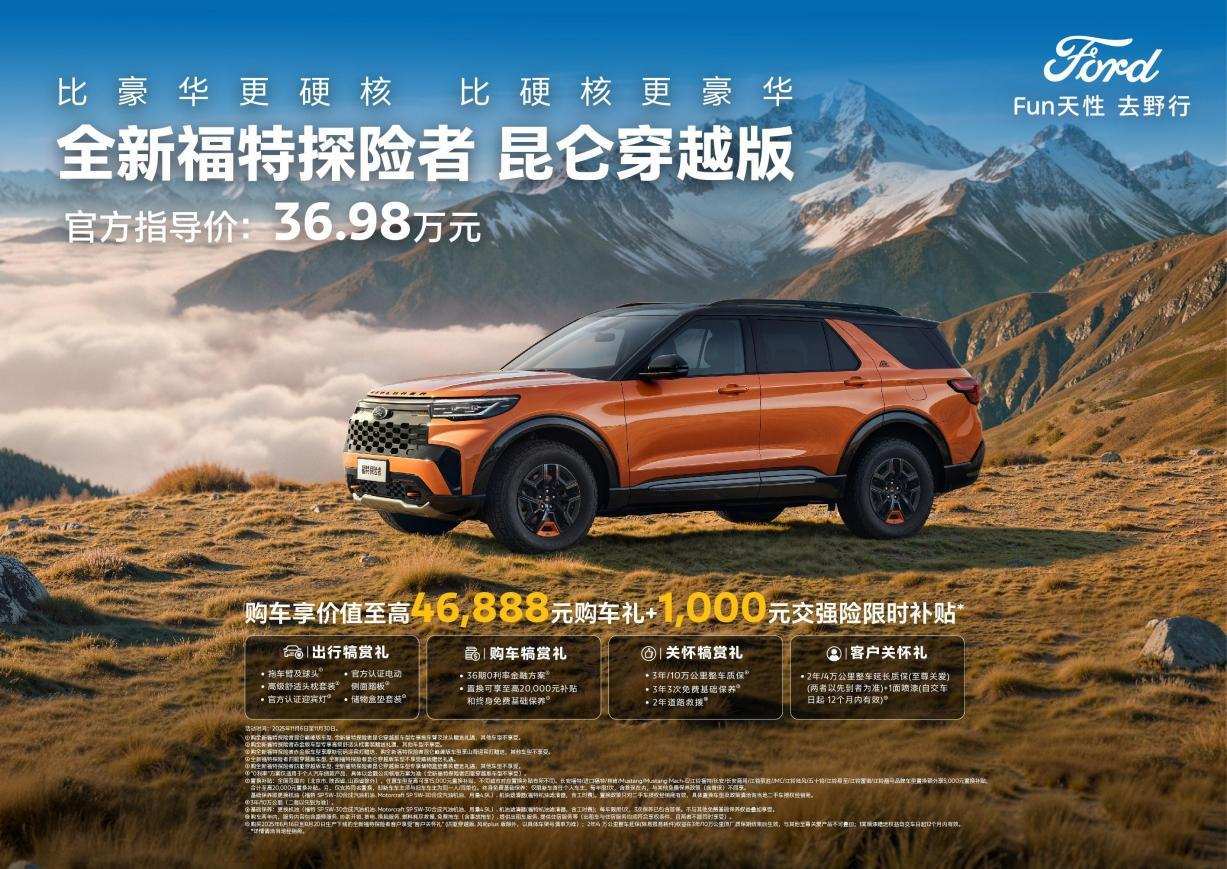 昆仑穿越版的加入,使福特探险者昆仑谱系的产品矩阵更加完善,能够更好地满足不同用户群体的多样化需求。从昆仑巅峰版的“硬核之上更豪华”到昆仑穿越版的“硬核穿越无忧选择”,这种差异化的产品定位,体现了福特对户外探索需求的深度洞察,从长途旅行到专业越野探险,用户都能在昆仑谱系中找到最适合的车型。