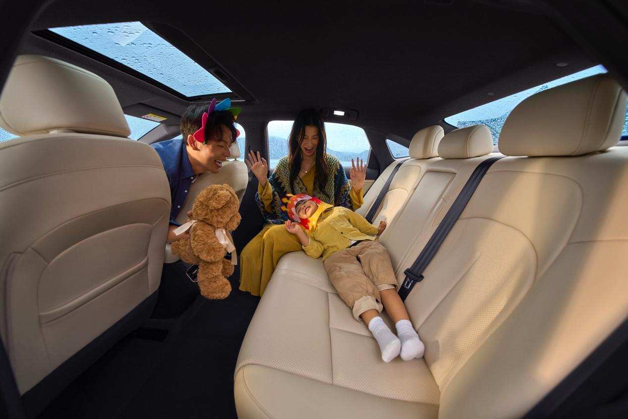 前排AI零压云毯座椅搭载49个智能传感器与智能电子皮肤系统,支持全身SPA级12点按摩、臀腰双区通风加热,动态侧翼支撑功能可在高速转弯、变道时自动收紧,提供更好包裹性;小憩模式配合轻柔按摩唤醒,适合家庭出行中的短暂休息。