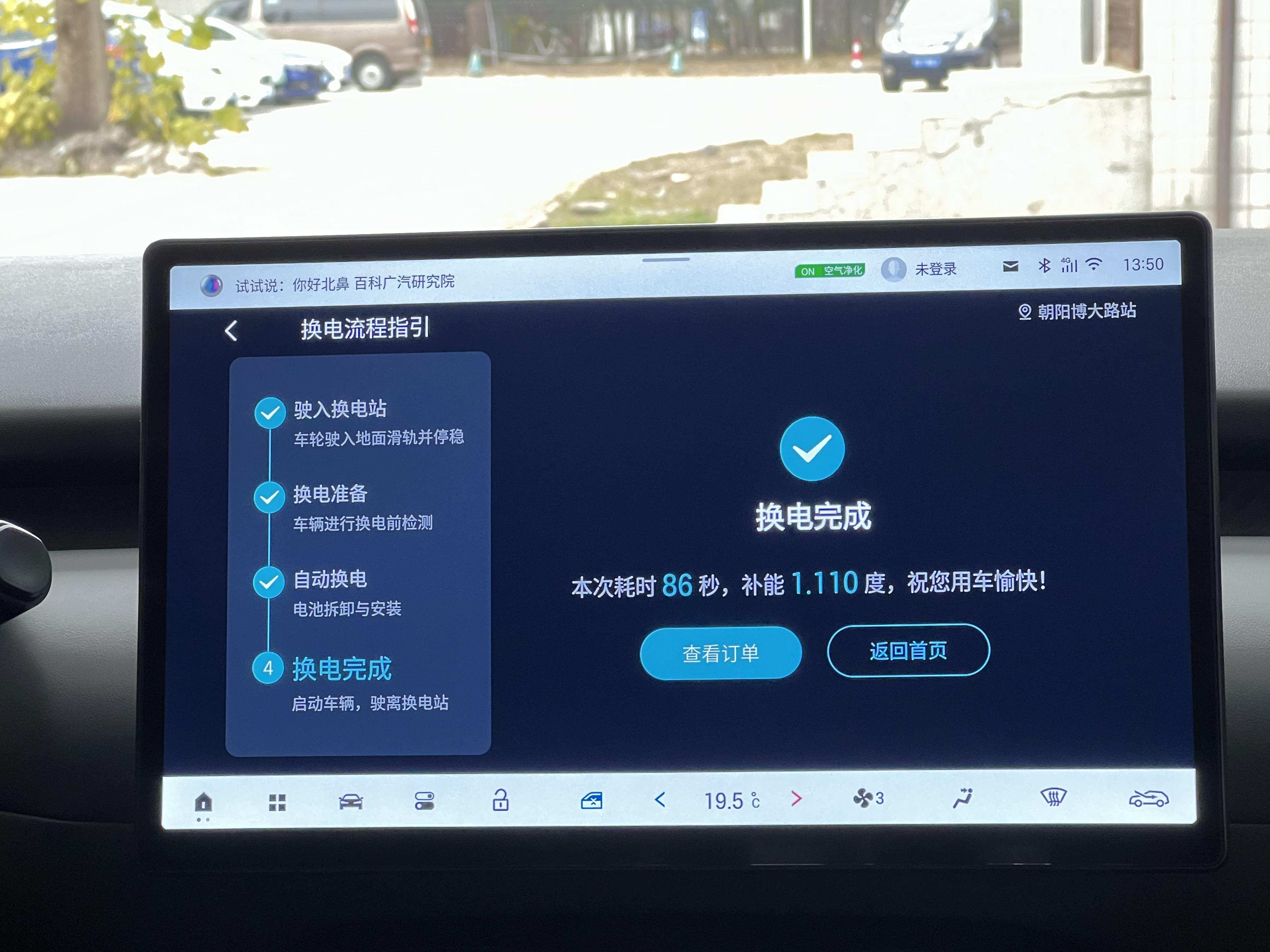 纯电出行的补能痛点,在埃安 UT super 上得到了有效解决。试驾当天,我特意前往巧克力换电站体验换电服务。