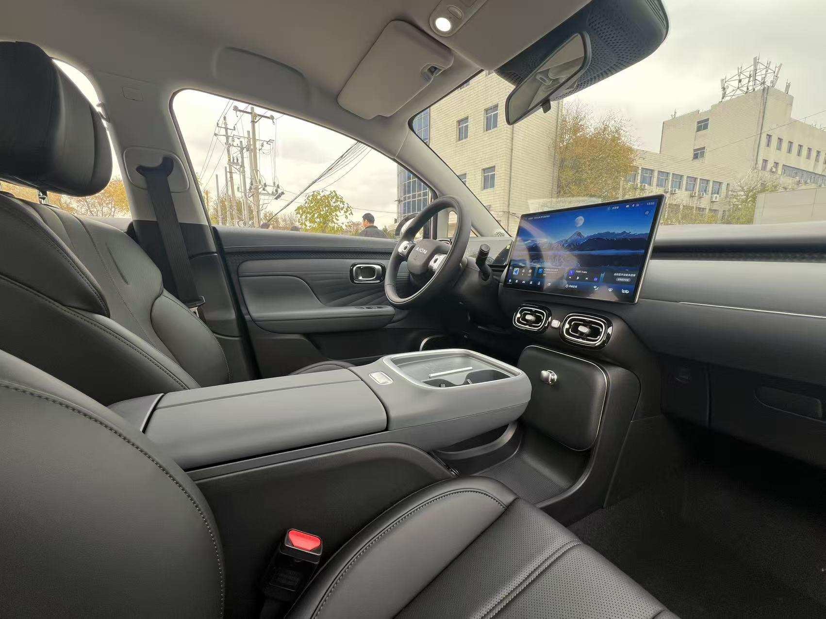 空间表现是这台车的核心亮点之一。我身高 178cm,调整好前排座椅后,头部仍有一拳多的余量,视野开阔不压抑。保持前排位置不变,后排腿部空间两拳多,即便 180cm 的乘客乘坐,也能轻松翘二郎腿,完全摆脱了小型车的局促感。后排横向宽度 1385mm,三名成年人并排坐时肩部不会拥挤,中间乘客的腿部也能找到舒适的放置位置,满足家庭出游的乘坐需求。