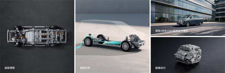 针对不同用户的使用场景,锐胜M8提供增程、纯电、CNG三种动力模式,每种动力都具备越级表现。