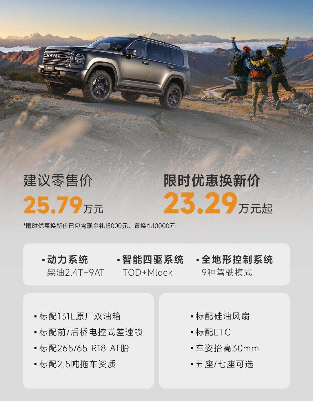 该车建议零售价为25.79万元,限时优惠换新价23.29万元起,限时优惠价已包含15000元现金礼与10000元置换礼,政策有效期为2025年12月11日至12月31日。相较于同配置的进口车型动辄超35万的价格,新车展现了明显的价格优势,让更多消费者能够触及长途穿越的梦想。