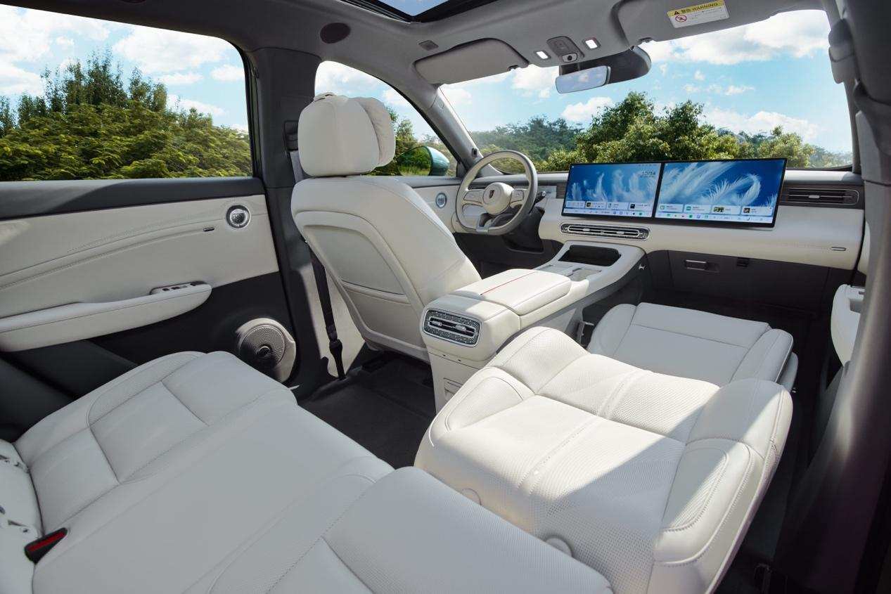 舒适性配置的全面下放让体验更具质感。前排零重力尊享副驾座椅支持18向电动调节,一键舒躺后长度可达1617mm,加热通风功能全系标配;后排云舒座椅采用极细腻Nappa真皮/超纤皮材质,20mm厚的慢回弹记忆棉填充贴合国人体态,中配及以上车型标配加热通风功能,带来国宾级舒享体验。1.38㎡外廓面积的可开启天窗、丹拿Confidence音响、三区空调与宽温域智能车载冷暖箱,进一步提升了座舱的舒适便捷性。