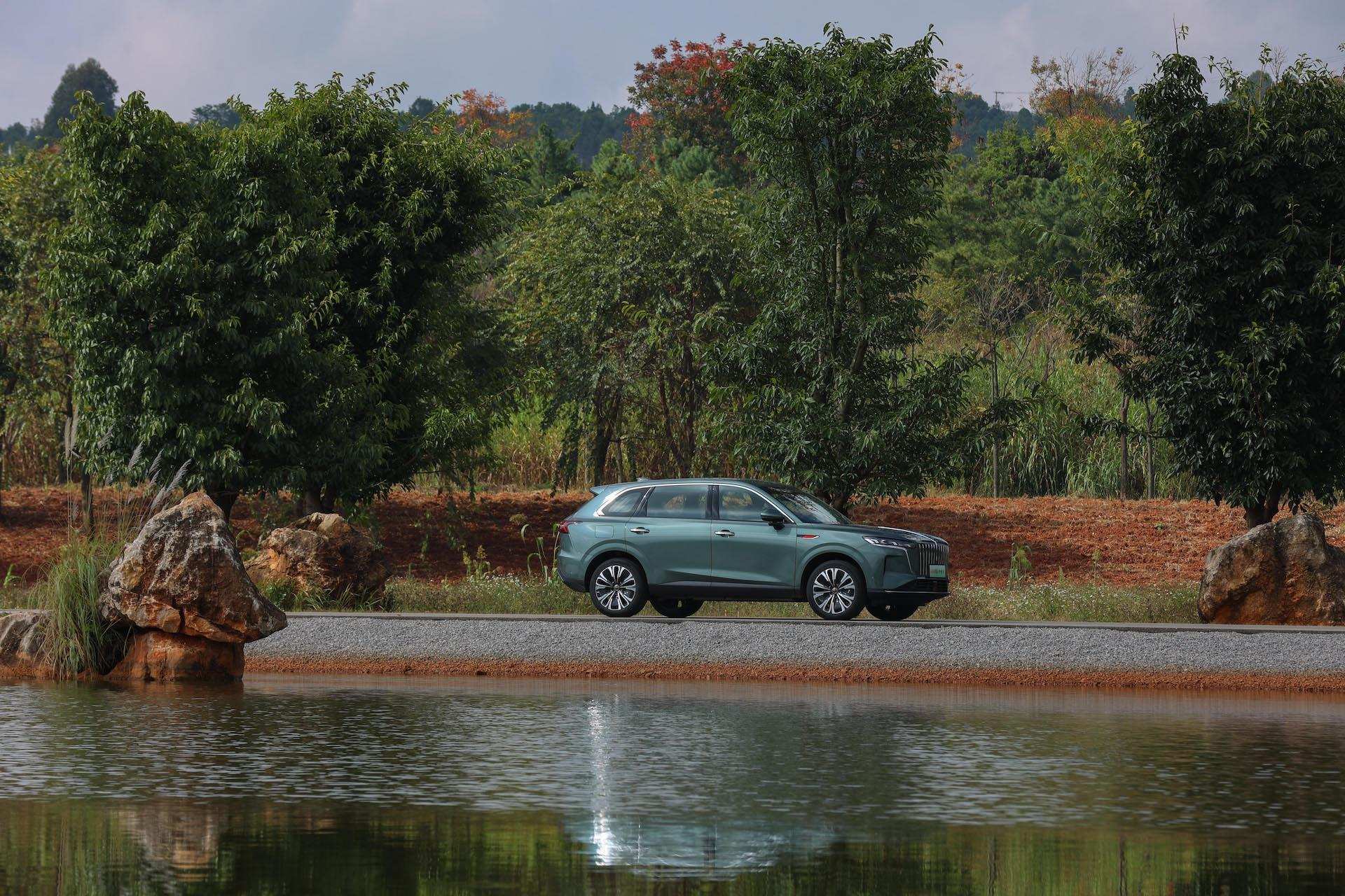 景观外饰颜色同样蕴含东方意境,星河黑、雪耀白、揽月银三款基础配色之外,更提供源自金葵花国雅的苍夜山海专属配色,低饱和度的绿色搭配随角异色效果,彰显中式优雅与自信。将文化元素深度融入设计肌理的做法,让 红旗HS6 PHEV在同质化的市场中形成了独特的辨识度。