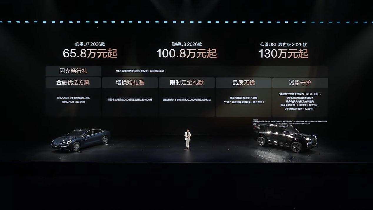 配合2026款车型上市,仰望推出补能、金融、售后等多元化礼遇,打造全周期高端用车体验;三年来的技术布局与市场表现,让技术驱动成为仰望高端化核心标签。