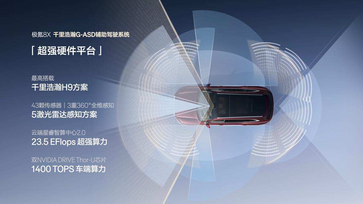 系统依托吉利850万辆智能汽车的百亿公里实驾数据,叠加沃尔沃安全基因的百万级事故数据库做支撑,硬件层面配备5颗激光雷达和双NVIDIA Thor芯片,算力与感知能力达标高端市场主流水平。
