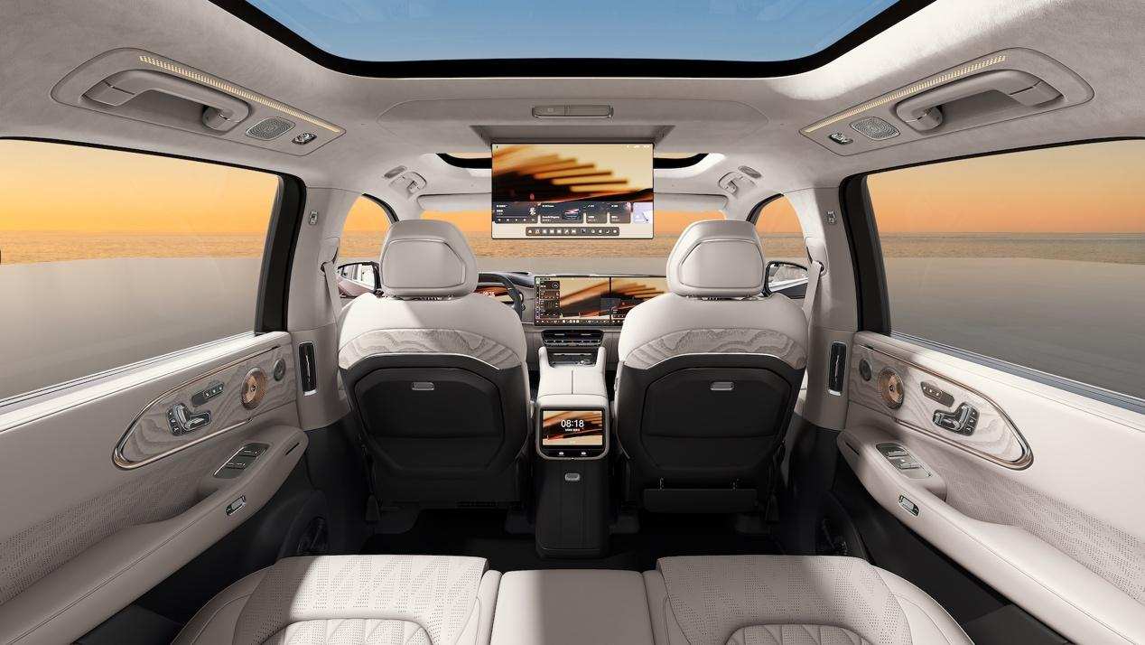 中配Ultra版预售价39.68万元起,在Max版基础上做智能与豪华配置升级,新增光语智能高清投影大灯、17英寸后排吸顶屏、16英寸双联屏,同时配备前门智能感应电动门,日常用车便捷度和座舱科技感显著提升,更适合注重座舱体验的家庭用户。