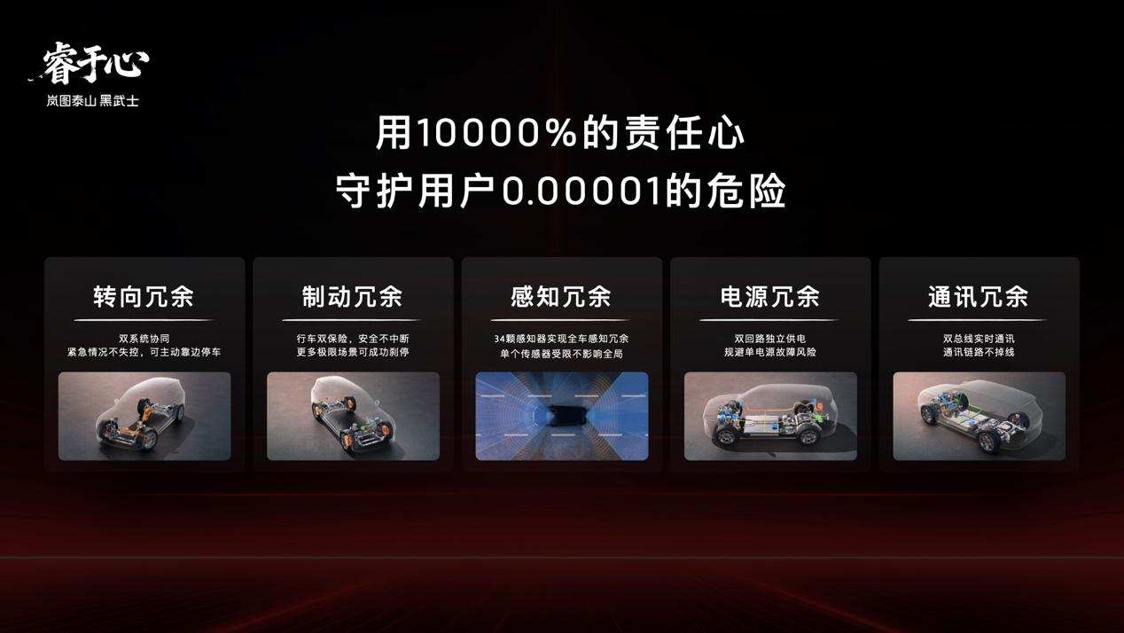 为了匹配L3级智驾的安全需求,新车特意打造了转向、制动、电源、感知、通讯五大冗余系统,通过多重备份,避免单点故障,为智驾安全筑起了一道全方位的防护墙。