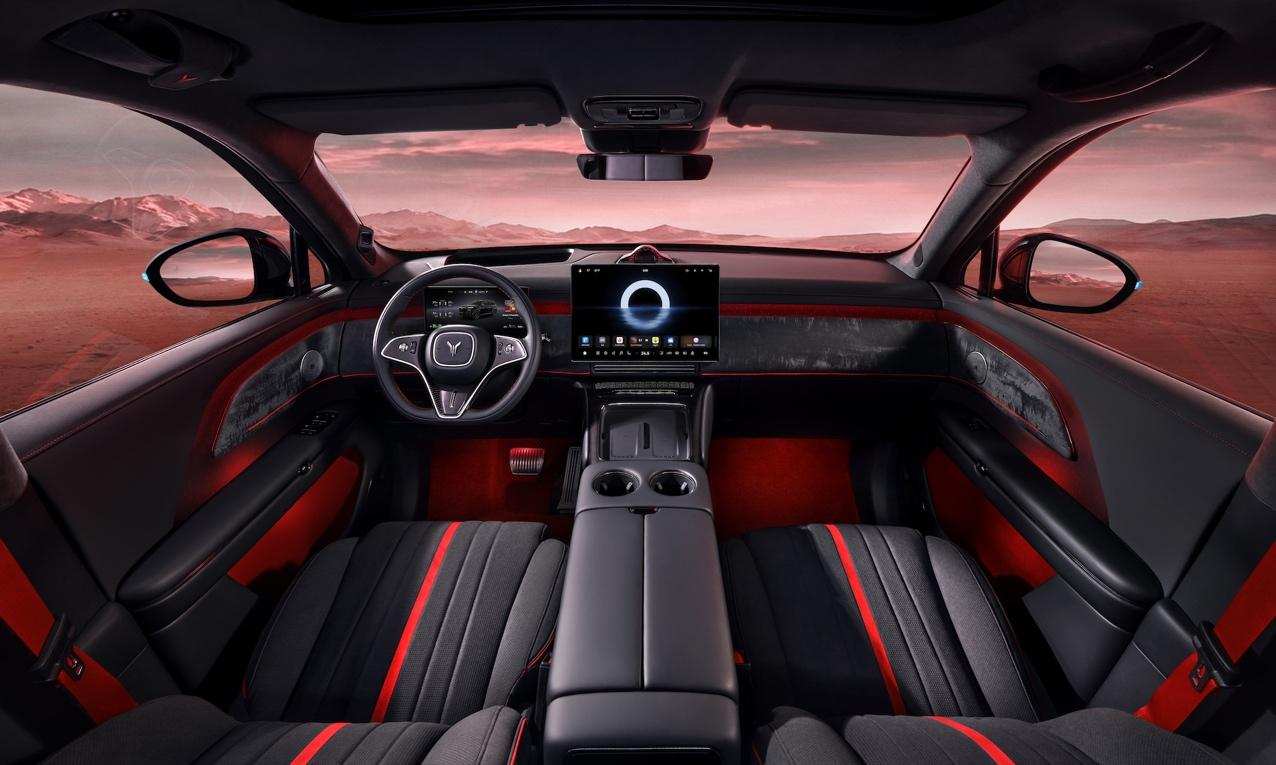 内饰设计则多了几分侠骨柔情,丹墨红黑的专属配色,以大面积玄墨为底色,只在座椅缝线、头枕等细节处点缀丹砂红,就像水墨画卷上的点睛之笔。