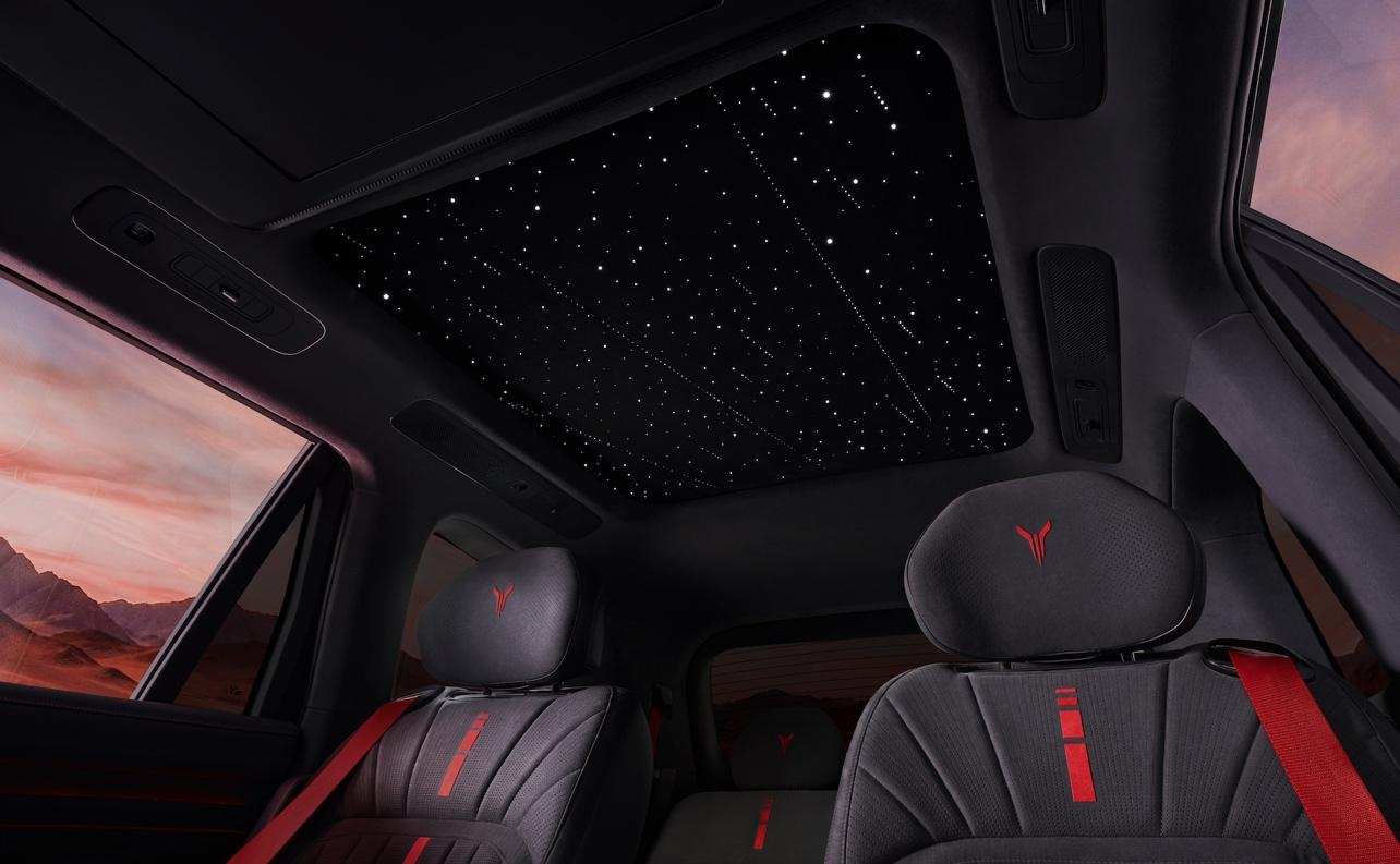 百万级豪车同源的星河天幕星空顶,配备了598颗灯珠,有星空、流星、群星三种模式,让浪漫质感与硬核气场完美融合。