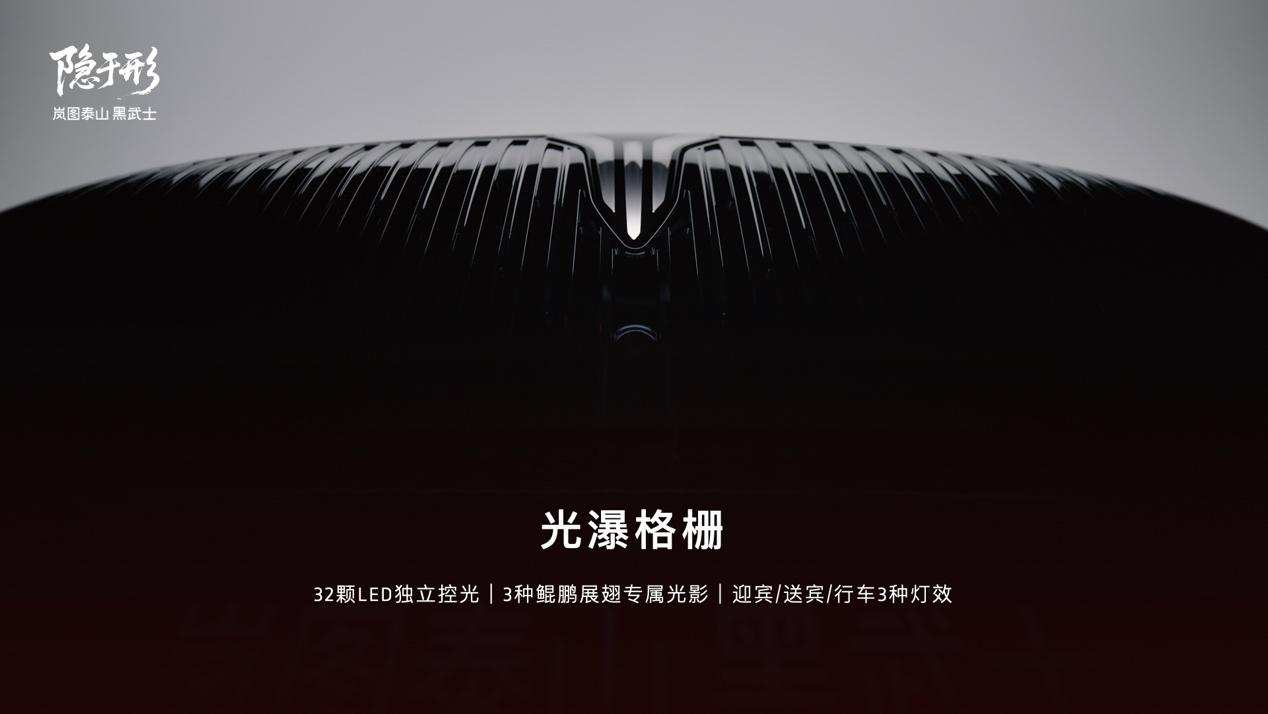 光瀑格栅作为标志性设计,内置32颗独立控光的LED灯珠,预设了三种鲲鹏展翅动态灯效,迎宾、送宾、行车时的灯效各有不同,把尊贵的仪式感融入出行的每一个环节,而且还能通过OTA持续升级,解锁更多个性化灯效,让豪华体验也能不断进化。