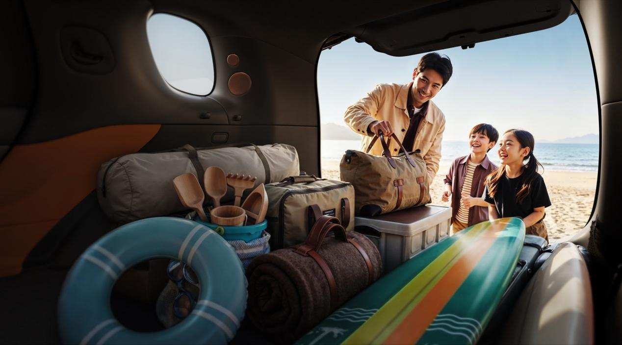 装载能力也很实用,后备厢能轻松放下6个28寸行李箱,1.15m的开口宽度和近1m的高度,不管是高尔夫球包,还是户外露营装备,取放都很方便。还有同级最大的12.3L双开门冷暖冰箱,能48小时离车恒温,降温速度也比普通冰箱快33%,不管夏天放冷饮,还是冬天放热食,都很省心。