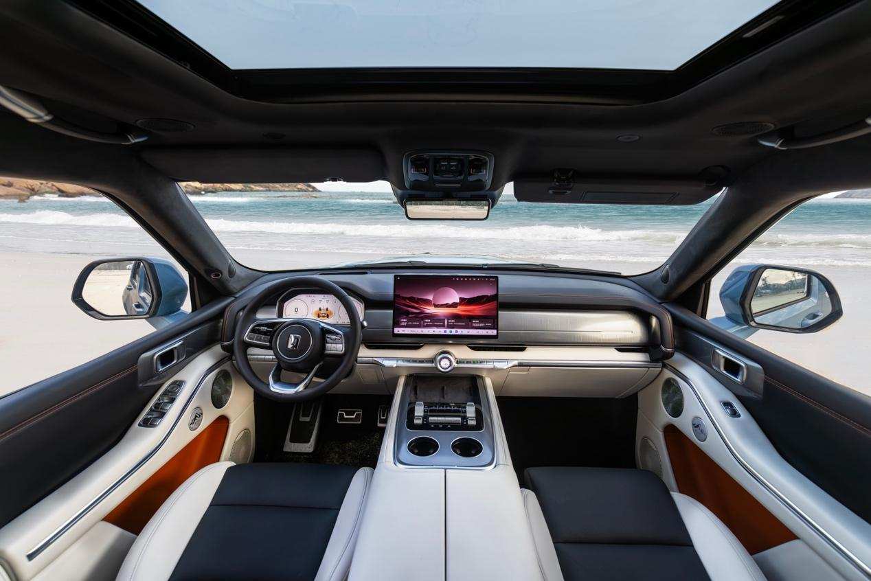 内饰设计遵循『天地有序』的东方理念,以『麒麟之脊』为中轴线打造对称式座舱,自带一种独特的秩序感和庄重感。全车腰线以上都用了高克重麂皮绒包覆,随手摸到的地方都是温润的质感,中控台则用航天级真铝材质雕琢出卷积云纹理,再搭配和豪华品牌同级别的精工缝线工艺,从内到外都透着中国旗舰车型的独特气韵。