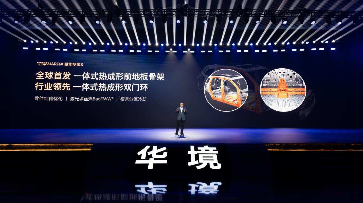 华境和宝钢一起研发,用了2000MPa核潜艇级的超高强钢,搭配一体化热成形技术,还有全球首发的一体式热成形前地板骨架,以及行业领先的一体式热成形双门环,打造出五纵十一横的底部结构和六环笼式车身,四门还装了八处2000MPa的防撞梁。