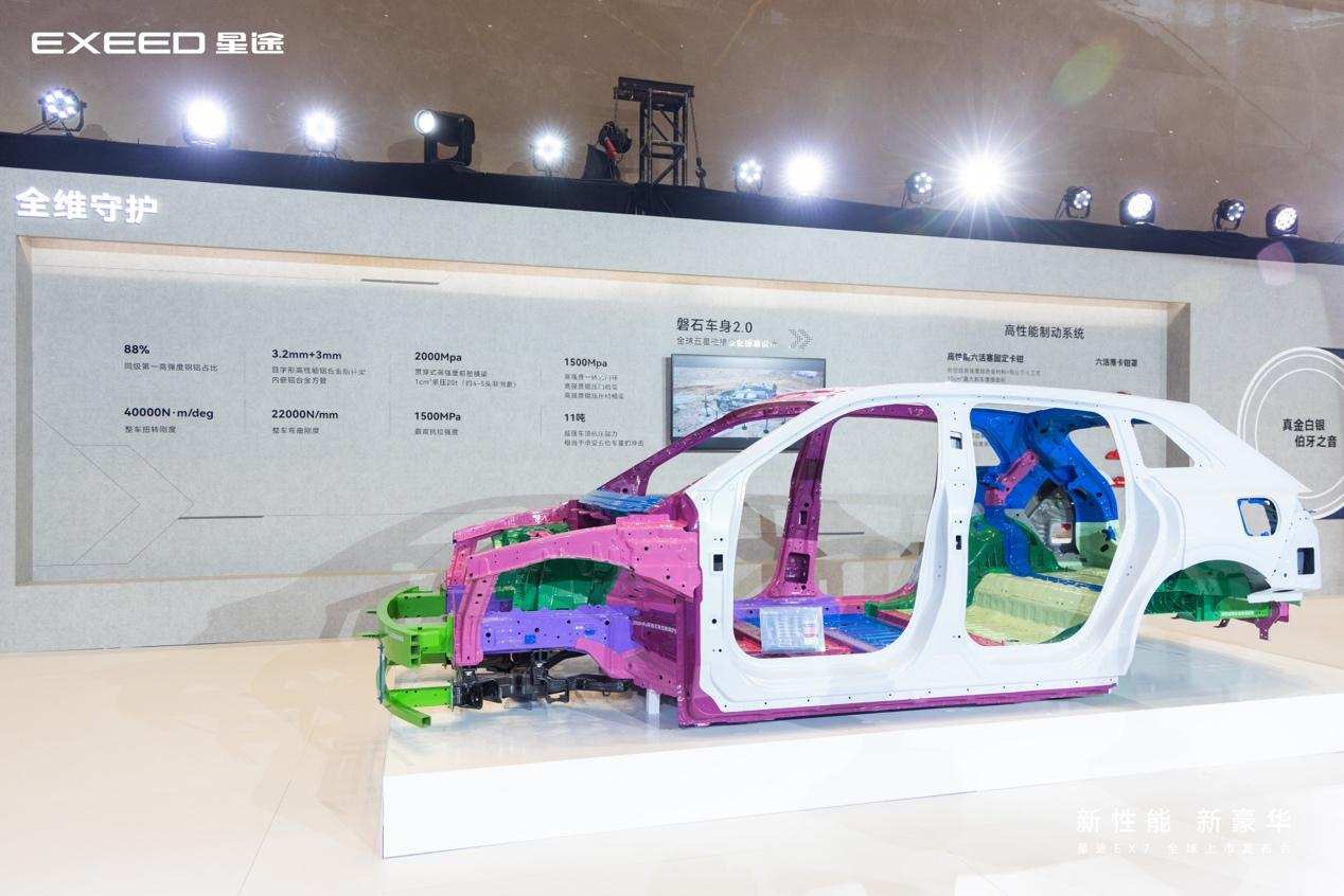 安全是星途EX7很看重的一点。这台车用了磐石车身2.0航空级车身架构,高强度钢铝占比达到88%,关键部位用的是2GPa热成型钢,整车扭转刚度有40000N·m/deg,车顶能承受11吨的压力,相当于5倍车重。全系标配7个安全气囊,再加上EMB三路冗余主动安全架构,被动防护做得很到位。