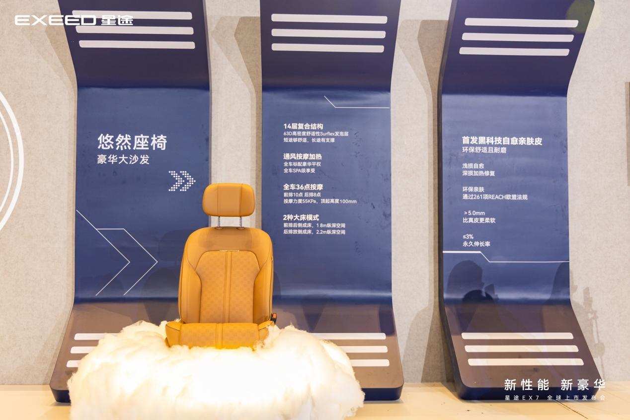 全车座椅用了十四层奢材工艺,通风、加热和36点SPA级按摩都是标配,座椅表面用的是行业首发的自愈亲肤皮,轻微划痕能自己恢复,较深的划痕加热后也能修复。