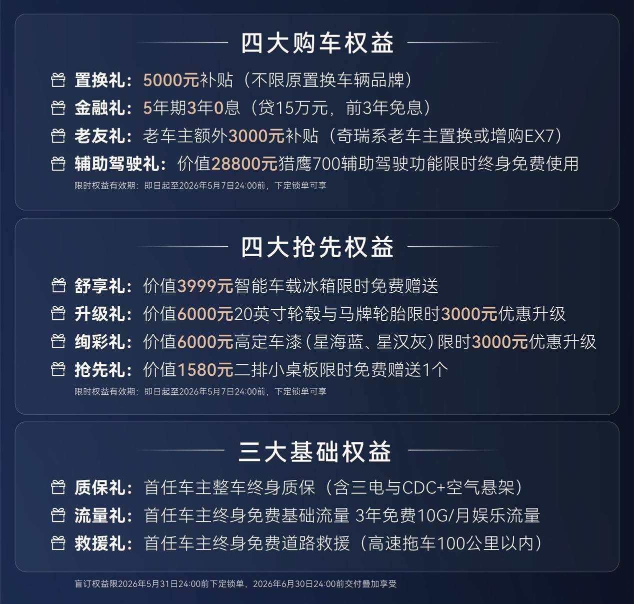 全系标配的猎鹰700智能辅助驾驶,再加上好几项行业首发技术,让20万级的用户,也能享受到高端车型才有的体验。19.99万元起的定价,也让它在竞争激烈的中大型新能源SUV市场,有了不小的竞争力。对于想找一台兼顾性能和豪华的家庭SUV的用户来说,星途EX7确实是一个值得考虑的选择。