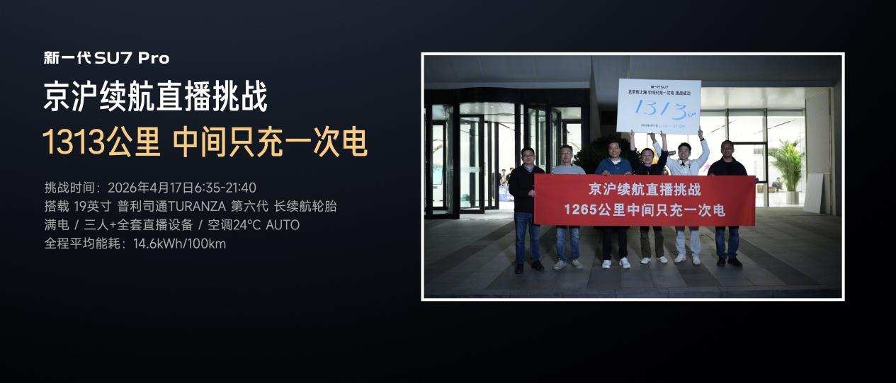 4月17日,小米汽车完成新一代SU7京沪续航中间只充一次电的直播挑战,车辆清晨6:35从北京满电出发,21:40抵达上海5G未来中心,总行驶里程1313公里,全程仅在山东临沭休息区补充一次电量,顺利完成挑战。续航表现的突破,源自CTB一体化电池技术、小米V6sPlus超级电机的搭载,以及热管理系统的全面升级,让整车能效实现新的跨越。