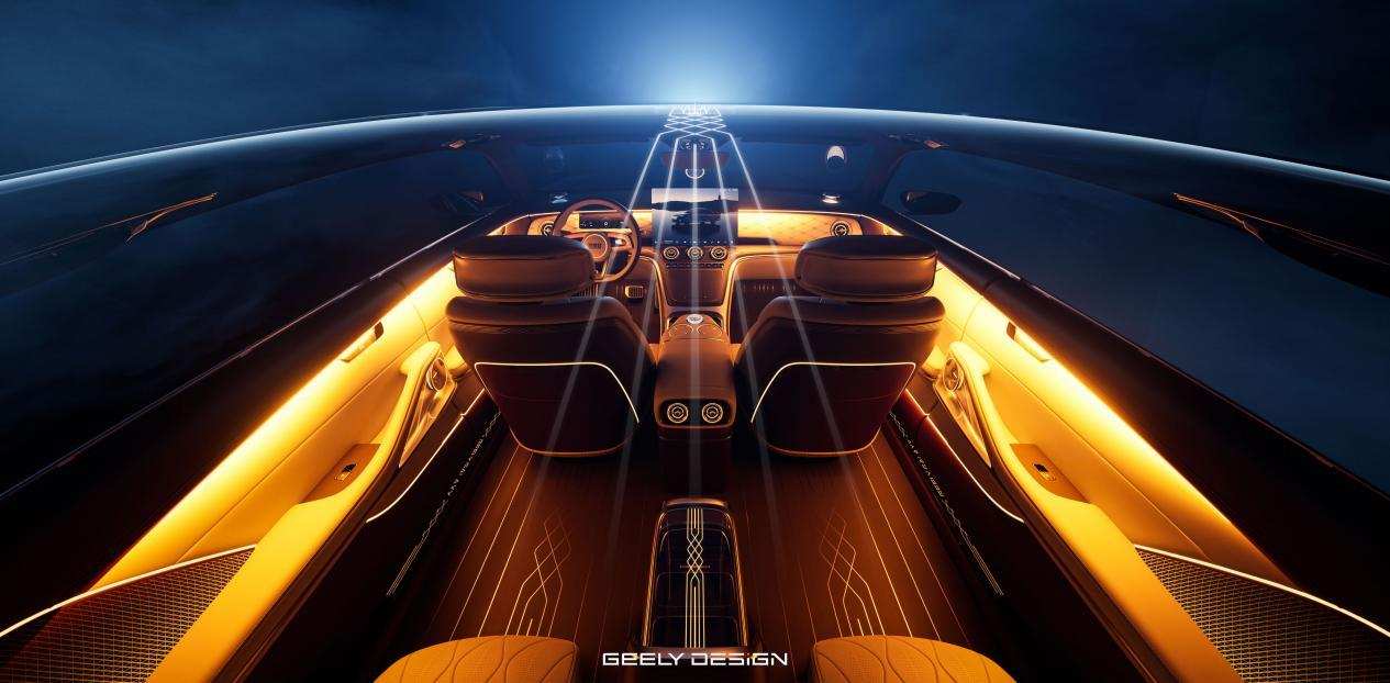 基于智能吉利“舱驾融合”智慧生命体的价值主张,银河之光第2代概念车用科技与五感的沉浸交融,打造银河之光第2代“西子水岸智舱”,进化演绎出“日月之行,若出其中”。三潭印月音响将西湖意境藏进车内,中国椅座椅灵感源自官帽椅,涟漪典藏扶手台未启时如水光乍敛,智能屏点亮时如水波漾开。舱内更以吉纹瑞意融入出风口、方向盘设计,细节之处尽显中国文化自信。