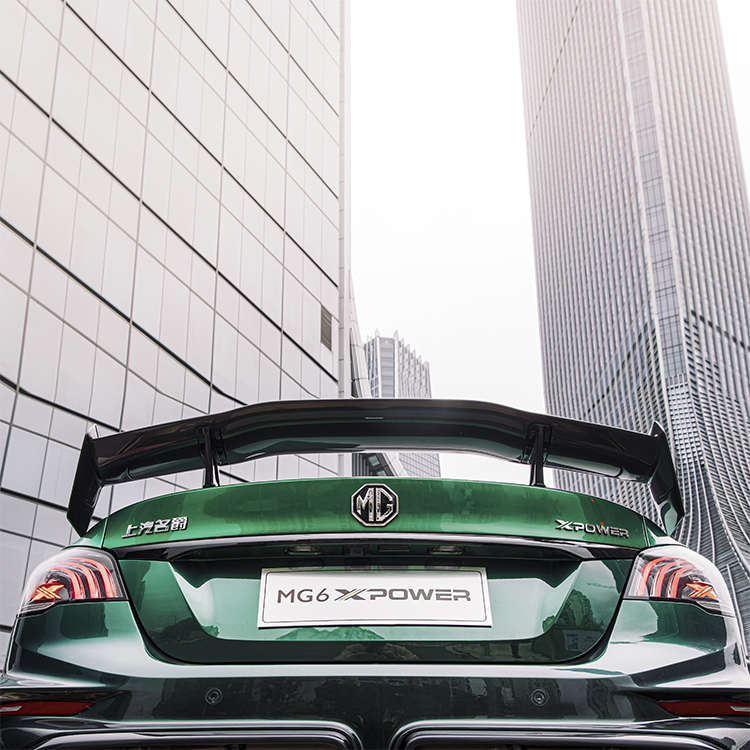 做MG6 XPOWER的时候我们的考虑也比较纯粹。我们考虑的初衷是,改装的标杆是什么,一辆MG6可以改装成什么样?基于此才做了这个产品,这个是当时技术团队更多的思考。在这辆车上,各位可以看到很多价格非常昂贵的配置,比如6活塞卡钳,热压罐干碳工艺一体成型尾翼等,可以说是同级少有。