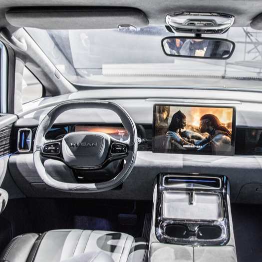 在冰箱的上方,则是一个可以翻折收纳的“二排吸顶屏”,它不仅尺寸可以达到17.3英寸,同时还能有超高分辨率,让后排乘客有得看,还能看得够清楚。同时在双高通骁龙 8155 芯片处理器的加持下,这个屏幕还能与前面的三块屏实现联动,以及手机遥控、无线投屏、外接游戏手柄等“跨界协作”。