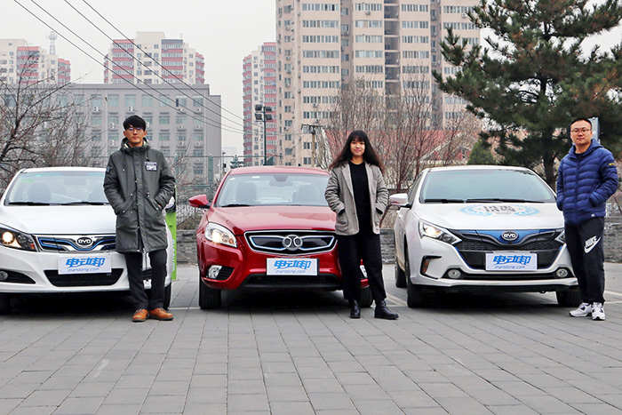 既然是刨根问底,那就必须得公开、公平、公正,我找来了编辑部表情包老涛、壮汉小克与电动邦当红美少女欣越,分别控制北汽新能源EU260、比亚迪e5、比亚迪秦EV,来保证这三台车同时、同环境下开启近光灯(三款车均全系标配卤素大灯)、空调(制热、制冷)。