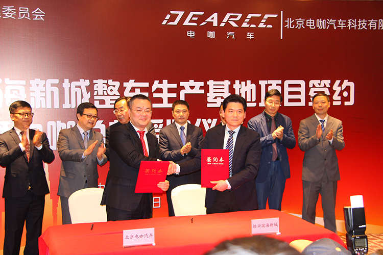 ▲电咖汽车滨海新城整车生产基地项目签约 暨电咖总部授牌仪式